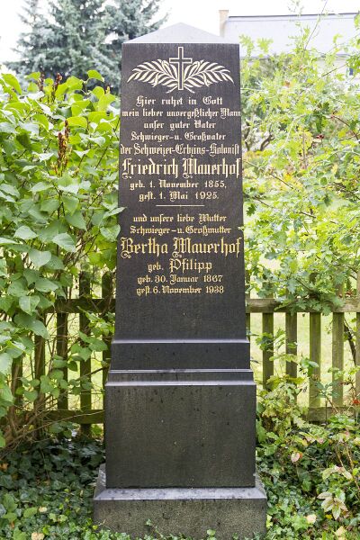 | aktuell | 10:48, 28. Aug. 2025 | 800 × 1.200 (324 KB) | Mahrla (Diskussion | Beiträge) | {{Dateiinformation |Beschreibung=Grabstein der Familie Mayerhoff |Datum=14.09.2014 |Urheber=Dr. Peter-Michael Bauers |Quelle=Eigenarbeit |Bemerkung= }} |