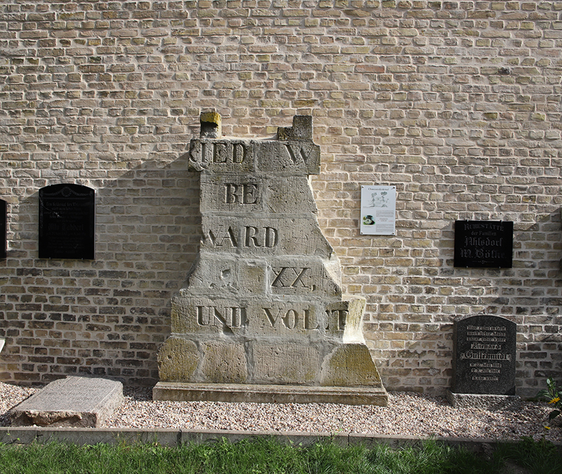 Bornim, Chaussee nach Nauen, Friedrich Wilhelm IV. Bornimer Kirche, Spolien und Erklärungstafel.