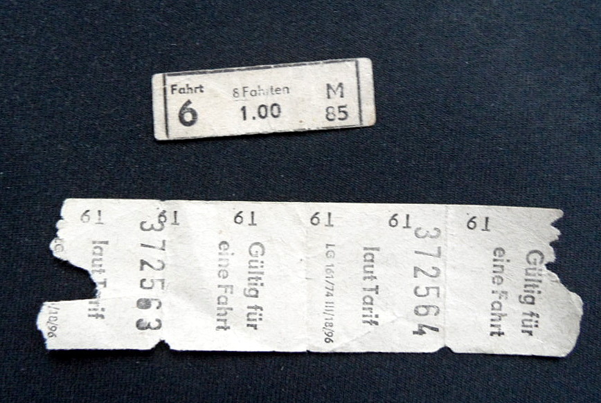 - Beschreibung: Fahrschein und Sammelkartenabschnitt für die Potsdamer Straßenbahn oder dem O-Bus