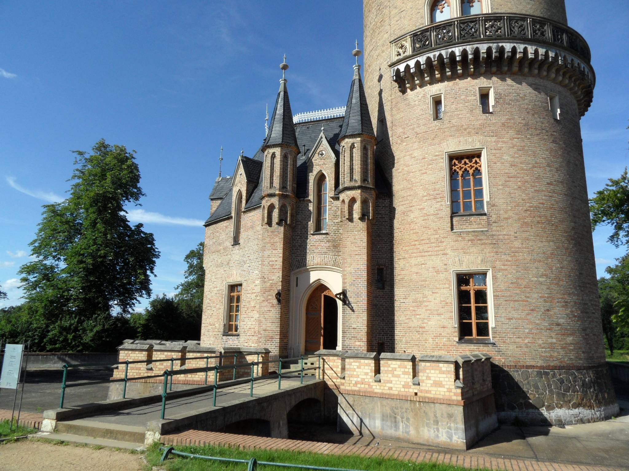 - Beschreibung: Der untere Teil vom Flatowturm mit Graben und Brücke; Kleinod im Park Babelsberg