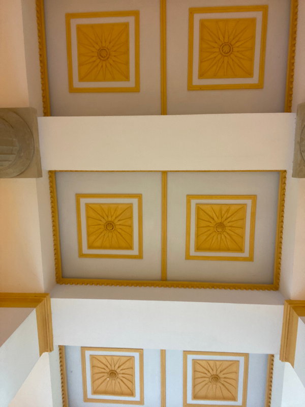 - Beschreibung: Kassettendecke im Säulendurchgang des Justizzentrums