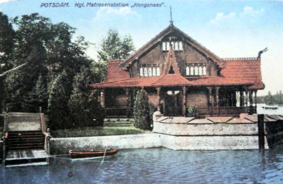 - Beschreibung: kolorierte Ansichtskarte vom Empfangsgebäude der Matrosenstation „Kongsnæs“