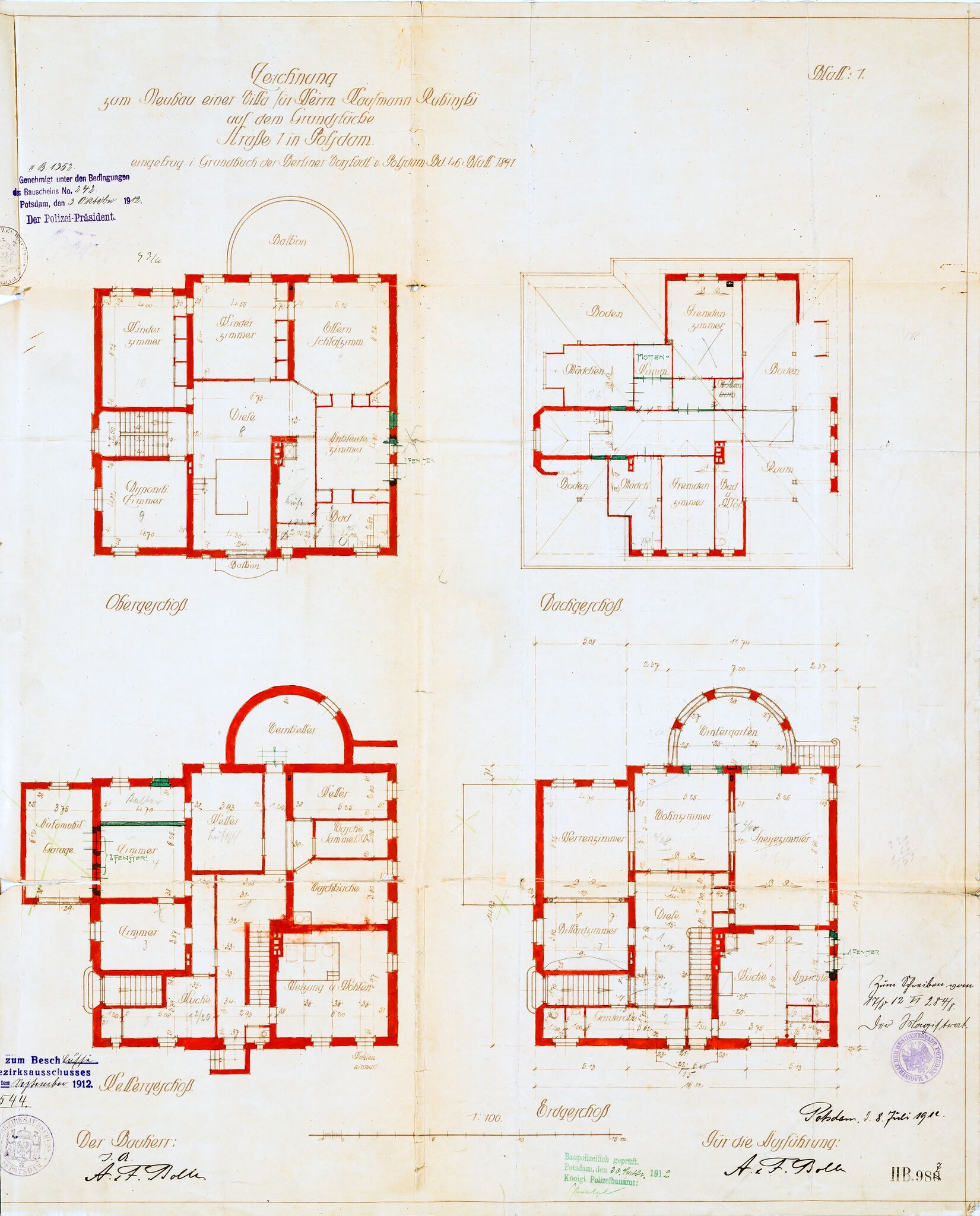 Bauzeichnung Fassadenansichten vom Architekten Friedrich Bolle 1912 Acta specialia Seite 28