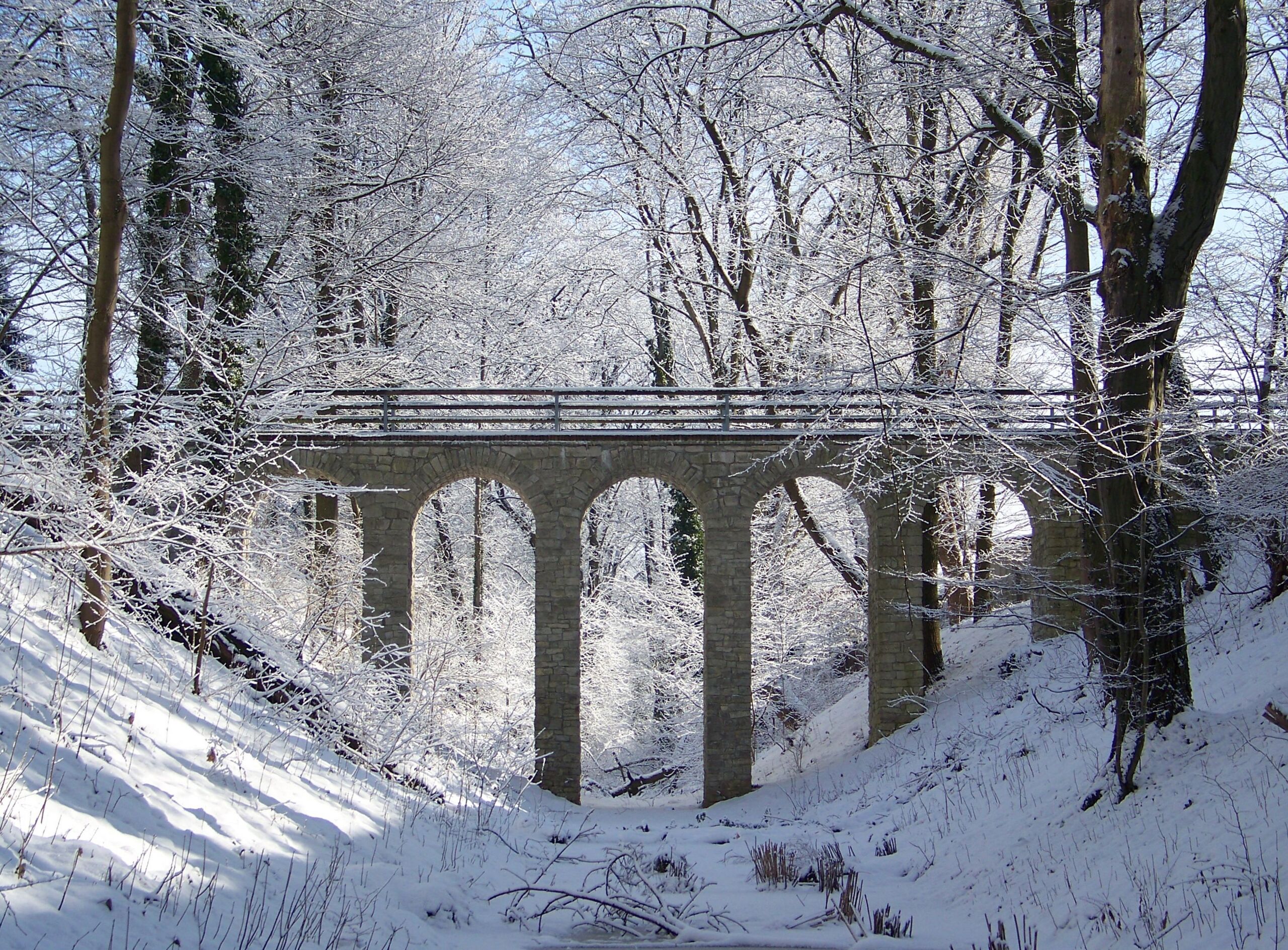 - Beschreibung: Foto der verschneiten Teufelsgrabenbrücke, in Potsdam-Bornstedt