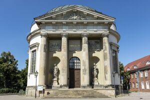 Der Bau war eine ungewöhnliche ingenieurtechnische Leistung. Die Kirche entstand – wie viele Bauwerke in Potsdam – auf sumpfigem Gelände. Dementsprechend musste das Fundament auch hier aufwendig gegründet und gegen Feuchtigkeit isoliert werden. Die ovale Kuppel ist eine statisch gewagte Konstruktion. Der elliptische Zentralbau mit flacher Kugel und dem breiten Säulengang an der Südseite zur Französischen Straße weist auf die ehemaligen Besitzer der Kirche hin. Zudem befinden sich in der Nische der Kirchenvorhalle zwei Statuen von Friedrich Christian Glume, welche die lateinischen Namen „Spes“ (Hoffnung) und „Caritas“ (Nächstenliebe) tragen.